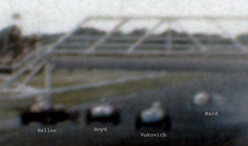 Accident 19 Published October 8, 2011 at 840 × 495 in The Accident: Photos Keller slides right with Boyd and Vukovich moving to the left to avoid Ward as he continues his roll down the outside lane of the track.