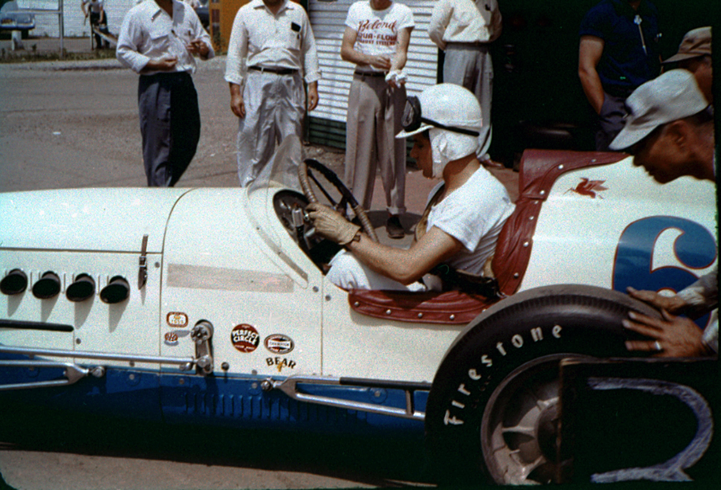 Vuky Clinton 74 Published December 16, 2011 at 2400 × 1631 in 1955 Indy 500 Cars and Drivers Ed Elisian in the garage area.